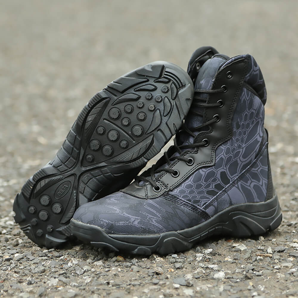 Тактические ботинки Alpo Navi black мужские демисезонные – качественная обувь, которая предназначена для прохождения по грязи, снегу, камням и другим препятствиям на дороге. Военно тактические ботинки изготовлены из нейлона, подошва резиновая. Внутренняя часть обшита дышащей канвасной лентой, поэтому ботинки хорошо сохраняют тепло, но при этом дышат, за счет чего ноги не потеют. Зимние берцы подойдут для холодной погоды поздней осенью или ранней весной. Ботинки выполнены в цветах хаки и застегиваются на шнуровку. Все ботинки соответствуют указанному размеру.